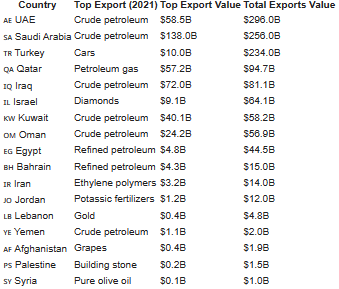 Þjóðir eins og Sádí Arabía og Sameinuðu arabísku furstadæmin hafa bein áhrif á olíumarkaðinn og gegna lykilhlutverki við að ákvarða verðið á olíuvörum.