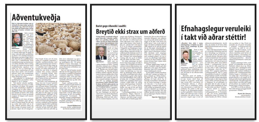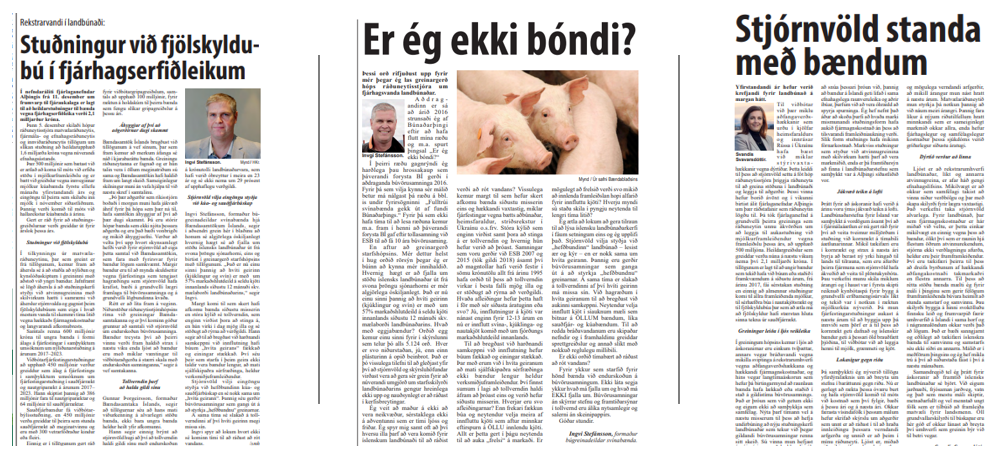 Grein Sigurðar er hér fyrir miðju, til vinstri er grein eftir sauðfjárbónda, en til hægri ritar bóndi sem býr með kýr, kindur og hesta. Hann leggur áherslu á að bændur þurfi að búa við sambærilegan ,,efnahagslegan veruleika“ og aðrar stéttir í landinu og væri það nú sannarlega gott ef svo gæti orðið!
