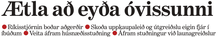 Í frétt í Morgunblaðinu er sagt frá hugmyndum ríkisstjórnarinnar um hvernig hægt verði að koma íbúum Grindavíkur til hjálpar.