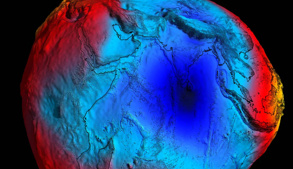 Sjávarborðið mun vera 100 metrum lægra í ,,þyngdaraflsholunni“ sem uppgötvaðist árið 1948. Vísindamenn telja að gatið í Indlandshafi hafi mótast af kvikustrókum sem komu djúpt innan úr Jörðinni, samkvæmt nýlegri rannsókn.