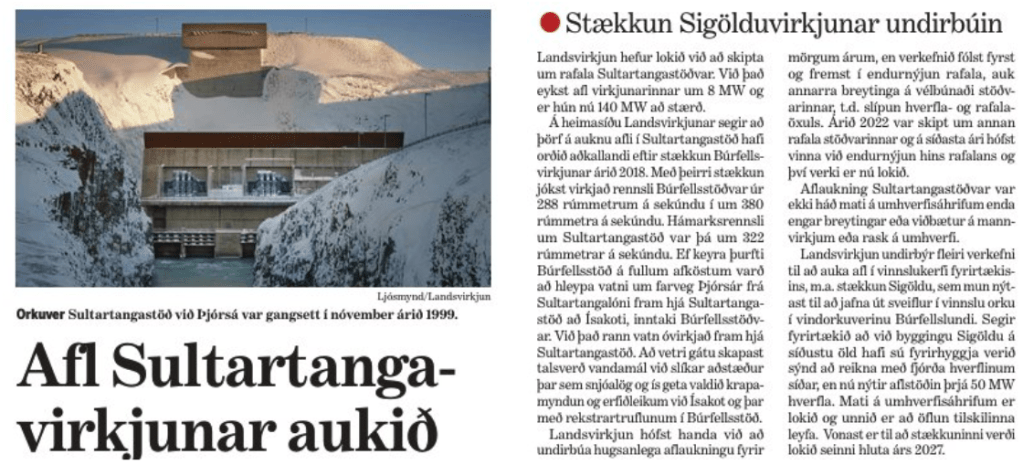 Það virðist hafa sloppið í gegnum nálaraugu virkjana- og orkuöflunarandstæðinga að unnið er að því að stækka Sultartangavirkjun.