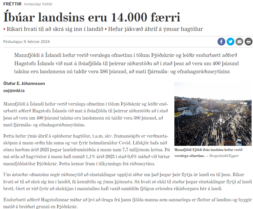 Það er sem íbúar eins sveitarfélags hafi flutt úr landi á einu bretti, en vitanlega er það ekiki svo og það sem eftir stendur er að það er ekki hægt að treysta tölum Hagstofunnar varðandi fjölda íbúa.