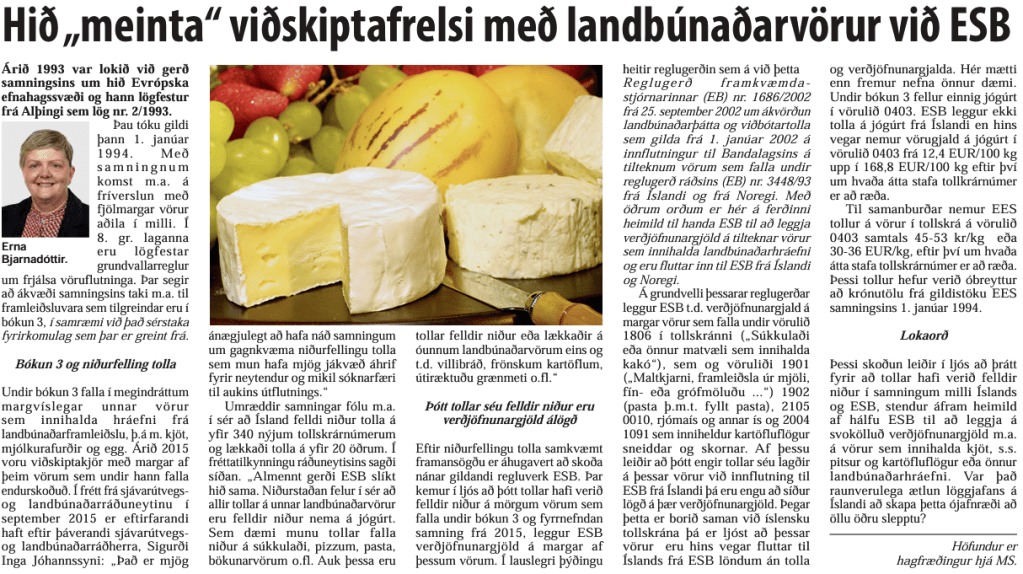 Þar kemur fram að ekki er allt sem sýnist og að það er til eitthvað sem heitir ,,bókun þrjú” sem gilda mun um unnar vörur sem innihalda hráefni úr landbúnaði, s.s. kjöt mjólk og egg.