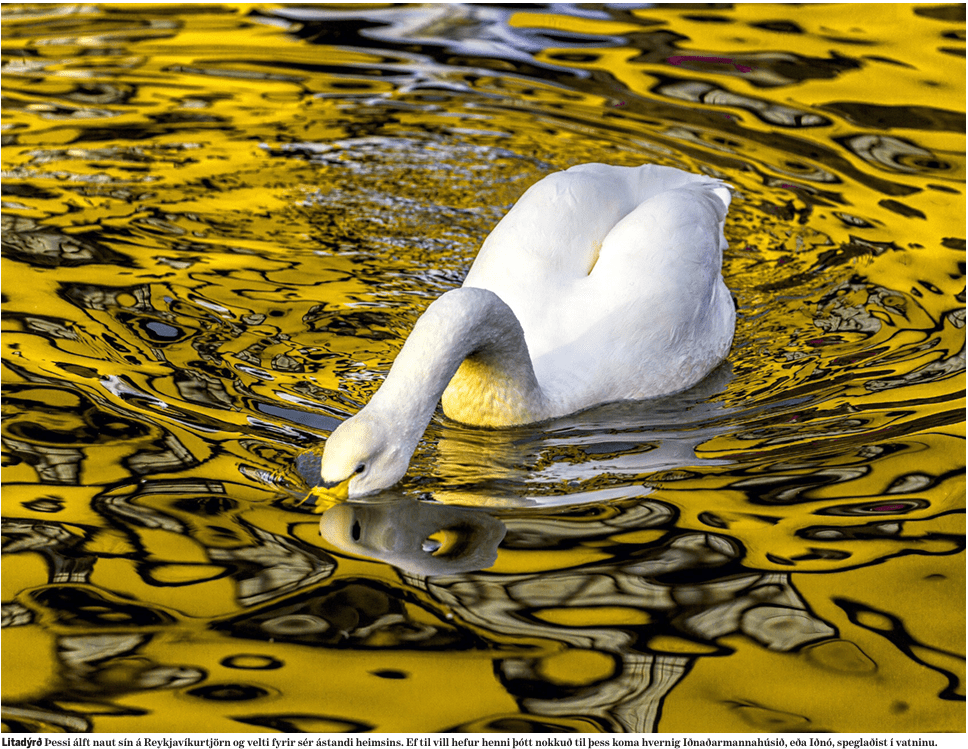 Álft á Reykjavíkurtjörn, mynd úr Morgunblaðinu.