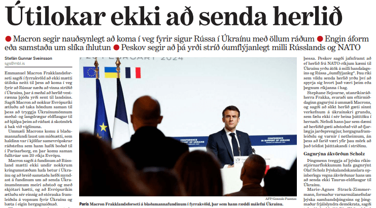Það hefur verið í fréttum, að forseti Frakklands útilokaði ekki að senda franska hermenn til Úkraínu.