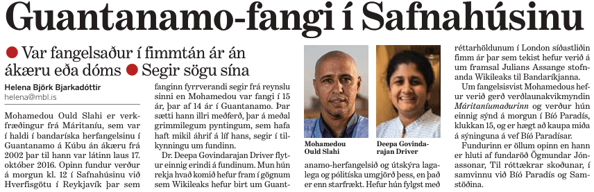 En aftur að efninu, því nú hefur það sem sagt gerst, að sloppinn er frá Guantanamo maður sem segir sögu, ef ekki sögur og hefur rekið til Íslands og frá þessu er sagt í miðli sem fram til þessa hefur ekki verið talinn hallur undir bandarísk sjónarmið.