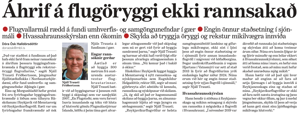 Menn eru ekki á eitt sáttir um flugvöllinn í Vatnsmýrinni. Flest er tínt til til að færa rök fyrir því að hann verði að vera þar og hvergi annarstaðar. Hugmyndir hafa komið fram um aðra staðsetningu og ef einver slík er nefnd rísa upp framsóknarmenn ýmissa flokka og finna hugmyndinni allt til foráttu.