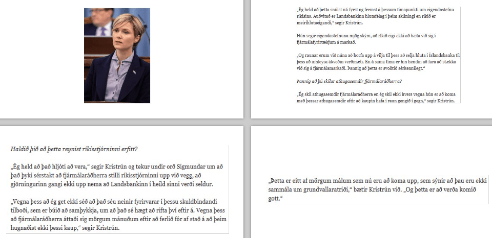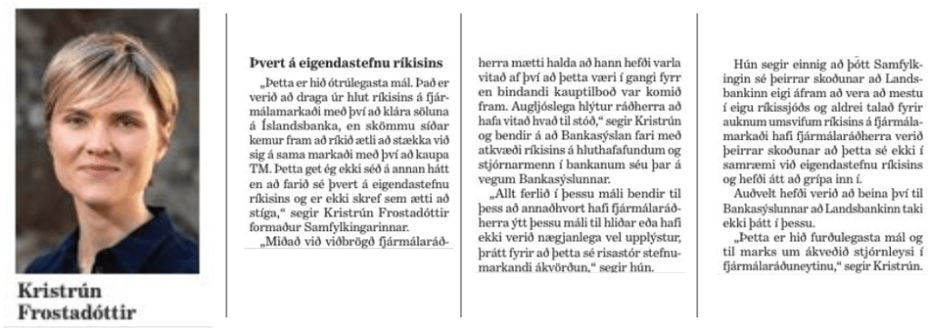 Við lok þessarar umfjöllunar er rétt að skjóta inn því sem Kristrún Frostadóttir sagði um málið í viðtali við Morgunblaðið.