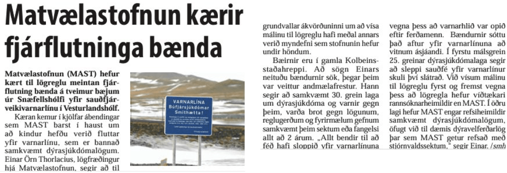 Þá sjáum við líka að lög um sauðfjárveikivarnir þvælast ekki fyrir sumum sauðfjárbændum sem einfaldlega sækja sitt fé ef þeim sýnist svo, hafi svo illa tekist til að það hefur farið yfir sauðfjárveikivarnarlínur.