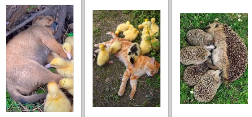 Það er ró og friður yfir vinum okkar á myndinni og það virðist engu skipta þó allir séu ekki eins, en þó tökum við eftir því að á myndinni sem er lengst til hægri eru allir eins, ef svo má segja.