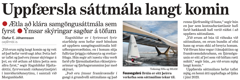 Við höldum að um undirskrift hafi verið að ræða, því annars er þetta allt ómark og búið spil, eins og krakkarnir segja, en hvað sem því líður, þá er ljóst að brúin sem um er rætt, verður glæsilegt mannvirki, þ.e.a.s. ef það verður að veruleika.