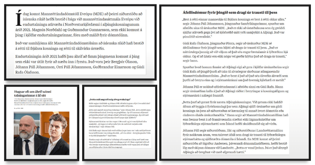 Tveir þingmenn og hvorugur í fríi, velta líka fyrir sér niðurstöðu Mannréttindadómstólsins og það er að vonum, því að þeim læðist grunur um, að þeir séu ekki réttir menn á réttum stað og réttum tíma!