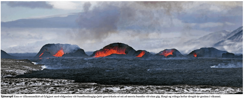 Við erum ekki haldin neinum sérstökum efa um hvað sé að gerast suður þar en vitum að af þessu stafar mengun, sem enginn getur ráðið við og við vitum lika, að þannig hefur það alla tíð verið og að við getum fátt gert, en þó stundum eitthvað, til að ráða við náttúruöflin.
