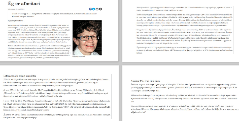 Kona nokkur afneitar loftslagsvánni sem boðuð er nær alla daga. Eigum við að trúa henni, eða eigum við að trúa hinum sem boða endalok menningarinnar eins og við þekkjum hana?