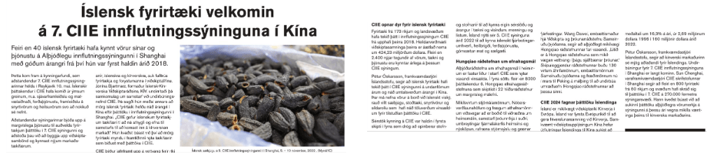 Íslensk fyrirtæki eru boðin velkomin til Kína á sýningu, sem þar stendur til að halda og svo er að skilja, sem sýningin gangi undir heitinu CIIE og sé sú sjöunda í röðinni.