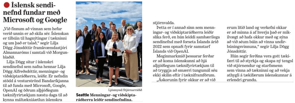 Í Morgunblaðinu, er frásögn sem lætur ekki mikið yfir sér en þar segir frá því, að íslensk sendinefnd hafi farið til fundar við fólk frá Microsoft og Google í þeim tilgangi að kynna, ,,máltækniáætlun íslenskra stjórnvalda”.