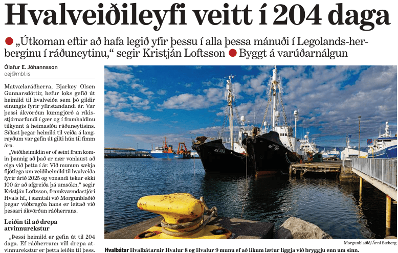 Hvalveiðileyfi var veitt eftir japl, jaml og fuður og vel er hægt að skilja Kristján Loftsson þegar hann hæðist að vinnubrögðunum vinstrigræningjanna bestu vina Bjarna Benediktssonar.