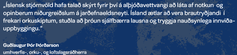 Við ljúkum þessu á tilvitnun, sem mun vera í umhverfis-, orku-, og loftslegsmálaráðherra sem mun vera yfirfljótandi fullur af hugmyndum um eitthvað sem hann ætlar að gera ,,þegar hann er orðinn stór“.