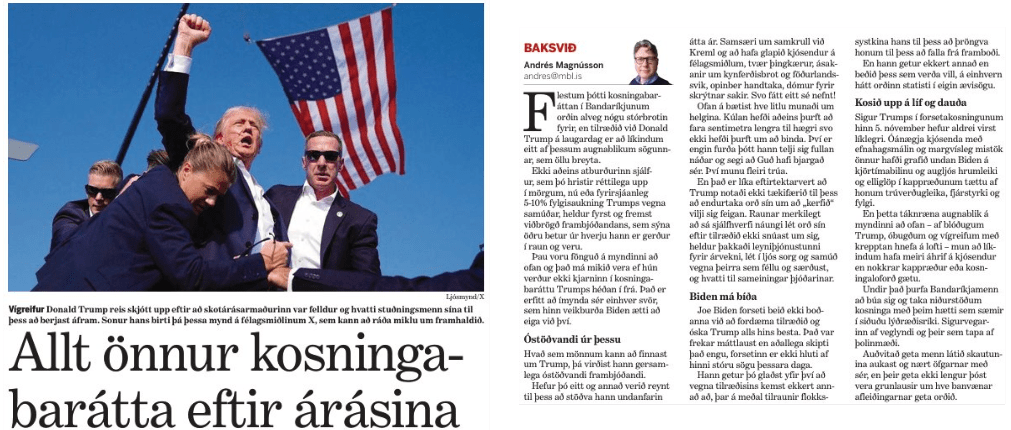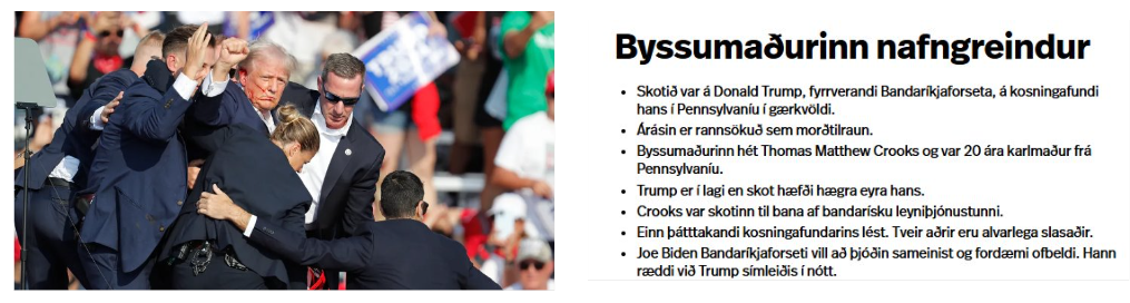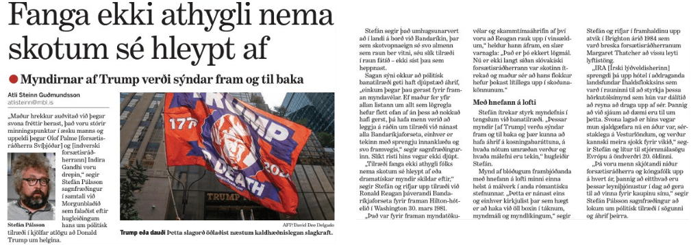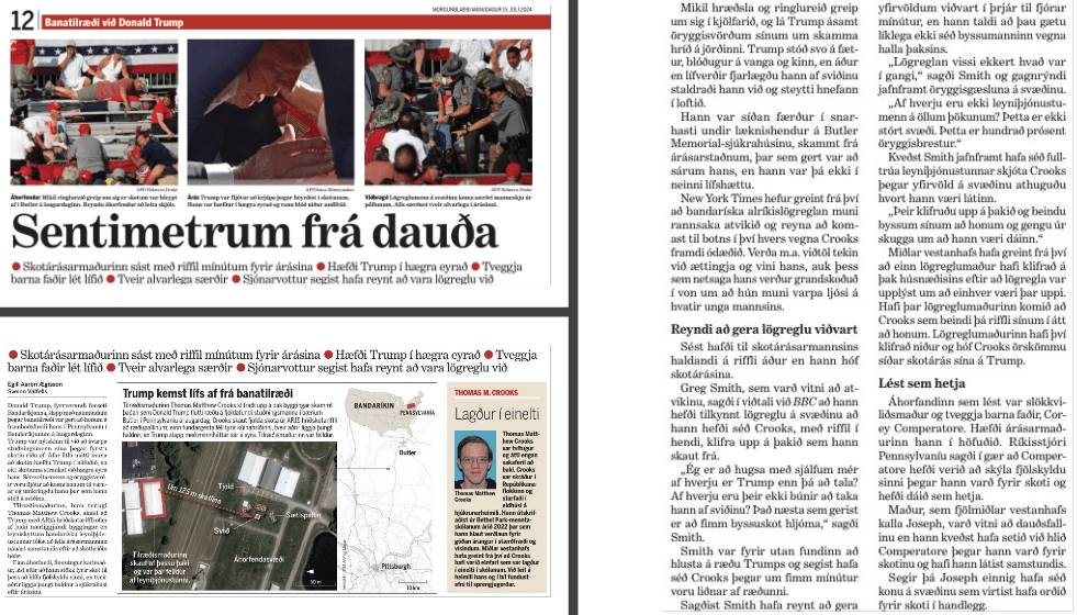 Það var gerð skotárás á forsetaframbjóðanda í Bandaríkjunum og sem vonlegt er eru fjölmiðlar heimsins talsvert uppteknir af þeim ótíðindum.