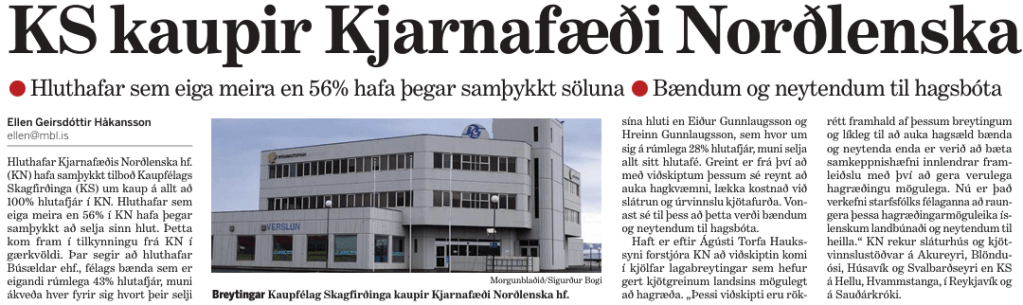 Við endum þetta svo á máli málanna þ.e.a.s. því, að búið er að liðka fyrir því, af sjálfu Alþingi þjóðarinnar, að fyrirtæki í slátrun og úrvinnslu þurfa ekki að sæta hefðbundnum reglum um samkeppni og samkeppnishömlur.