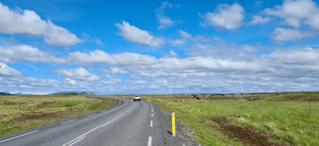Allt er ljósara með þá sem hér er, því hún er tekin af Urriðafossvegi og það er brúin yfir Þjórsá sem sést í fjarlægð.