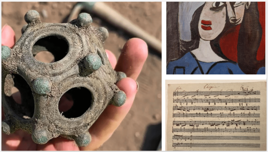 Mynd eftir Picasso, tónverk eftir Chopeng og það dularfyllsta er hér lengst til vinstri.