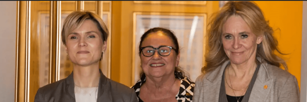 Á myndinni sjáum við konurnar þrjár sem eru að glíma við það að koma saman ríkisstjórn í stað þeirrar sem sprakk á limminu sællar minningar.