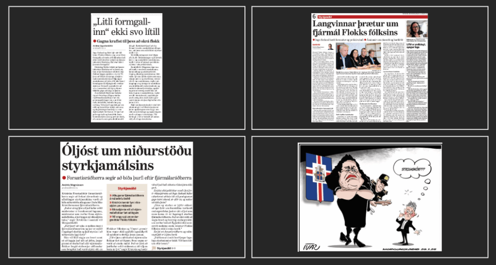 Styrkjamálið hefur raskað ró en þó aðallega gefið blóð á tönn og eftir stendur, að einungis tveir flokkar hafa farið að reglum, að því ógleymdu að hinir opinberu afgreiðslumenn hljóta að hafa gleymt sér líka.
