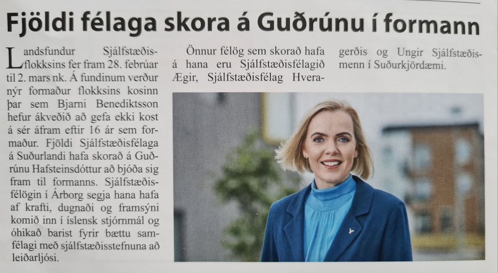Formannaskipti eiga að laga stöðuna en hvort svo verður mun tíminn leiða í ljós en einn vænlegur kandidat er á sviðinu hjá Sjálfstæðisflokknum og verður að segjast að hann, sem reyndar er hún, sem er alls ekki verra, hlýtur að teljast efnilegur formaður, er með reynslu úr atvinnulífinu, hefur góða viðkynningu og er málefnaleg í umræðu.