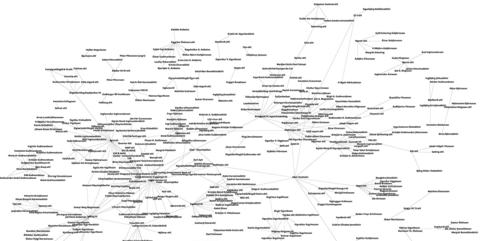 Greininni fylgir heljarmikið graf af eignatengslunum, sem hér birtist í tvennu lagi og án þess að ábyrgð sé tekin á að rétt sé teiknað:
