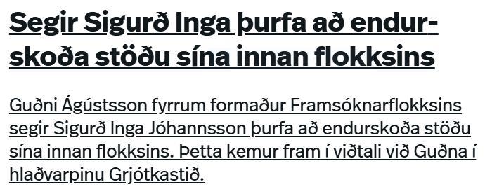 Því má við þetta bæta að Guðni Ágústsson telur að Sigurður þurfi að skoða stöðu sína sem formaður Framsóknarflokksins!