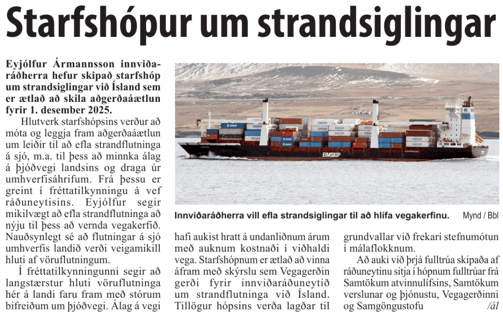 Að lokum erum við síðan komin í mál málanna sem er ,,strandsiglingar“ umhverfis Ísland.
