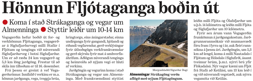 Varðandi jarðgangagerðina er rétt að það komi fram, að það getur tekið ámóta tíma að rífast um hvar þau skuli vera og það síðan tekur, að renna borunum í gegn um fjöllin.