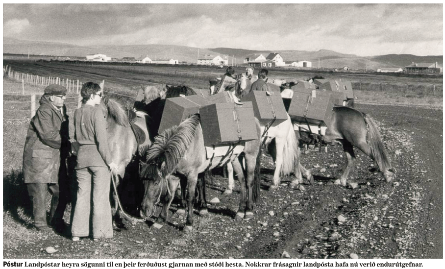 Við sjáum á myndinni hér að ofan hvernig ferðast var um landið áður fyrr og hvernig þarfasti þjónninn var nýttur til þeirra ferðalaga.