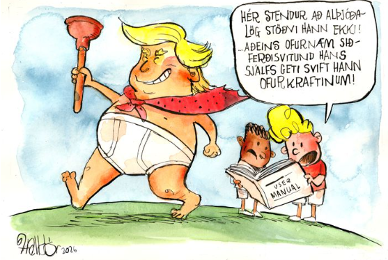 Teiknarar fjölmiðlanna okkar, hafa úr nógu að moða og hver myndin tekur við af annarri en sannleikurinn er sá, að betra væri að maðurinn hefði hægt um sig og gerði sér far um að umgangast heimsbyggðina af, þó ekki væri nema örlítilli virðingu.