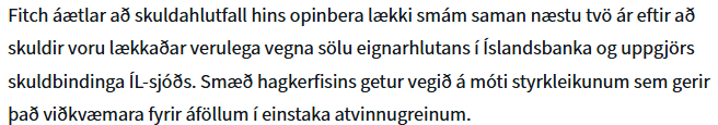 Við yfirlit fjölmiðla þennan morguninn rekumst við á þetta, sem væntanlega þýðir, að betra sé fyrir ríkissjóð að taka lán, þ.e.a.s. að kjörin séu betri.