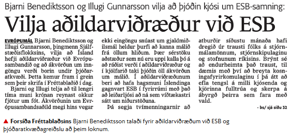 Það virðist sem sagt vera svo, að Bjarni hafi skipt um skoðun en ekki kemur fram hvort það tengist því að hann hefur hætt þingsetu og sé kominn til annarra starfa.