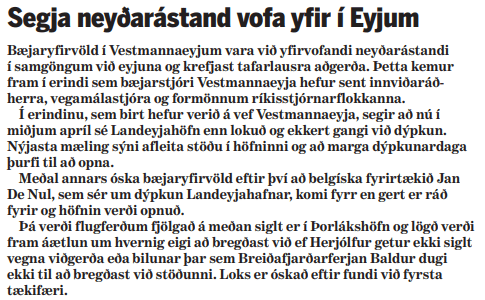 Komin er upp sú staða, að ekki er hægt að sigla milli Landeyjarhafnar og Vestmannaeyja vegna þess að ekki gengur að halda fyrrnefndu höfninni opinni. Þeir voru til sem vöruðu við því, að raunhæft væri að höfn á þessum stað yrði nothæf til lengdar og nú hefur það sannast að svo er.